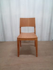 先日、背が板・座も板仕様のスタッキングチェアを32本製作いたしました。